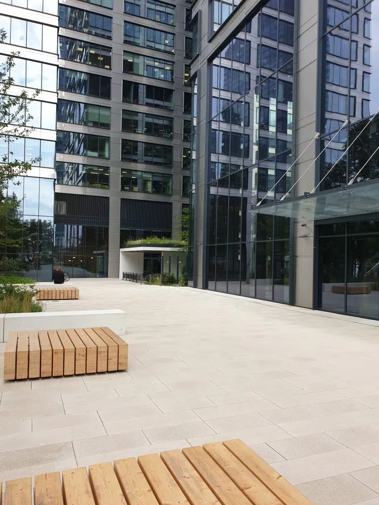 Pierwsza inwestycja z płytami elewacyjnymi realizowana w Warszawie. Projekt dotyczył produkcji, dostawy oraz montażu płyt elewacyjnych z betonu architektonicznego. Płyty trawertynowe o płaskiej powierzchni oraz płyty gładkie o powierzchni wykonywanej na specjalne zamówienie klienta.Prefabrykaty znalazły swoje miejsce w holu głównym budynku, i stanowią integralną część całego wnętrza. Jako nawierzchnię wokół obiektu zastosowano płytki z betonu architektonicznego oraz śrutowane. Wyjątkowość nawierzchni stanowi wykonanie jej w technologii TX Active, czyli na bazie betonu fotokatalitycznego. Jest to beton pochłaniający zanieczyszczenia z powietrza i neutralizujący niebezpieczne związki. Była to pierwsza na taką skalę tego typu inwestycja w Polsce. Warto podkreślić, że jej parametry zostały potwierdzone przez niezależne instytucje. KLIENT: Skanska Skanska Property Poland Sp. z.o.o. PROJEKT:JEMS Architekci REALIZACJA:SKANSKA S.A.