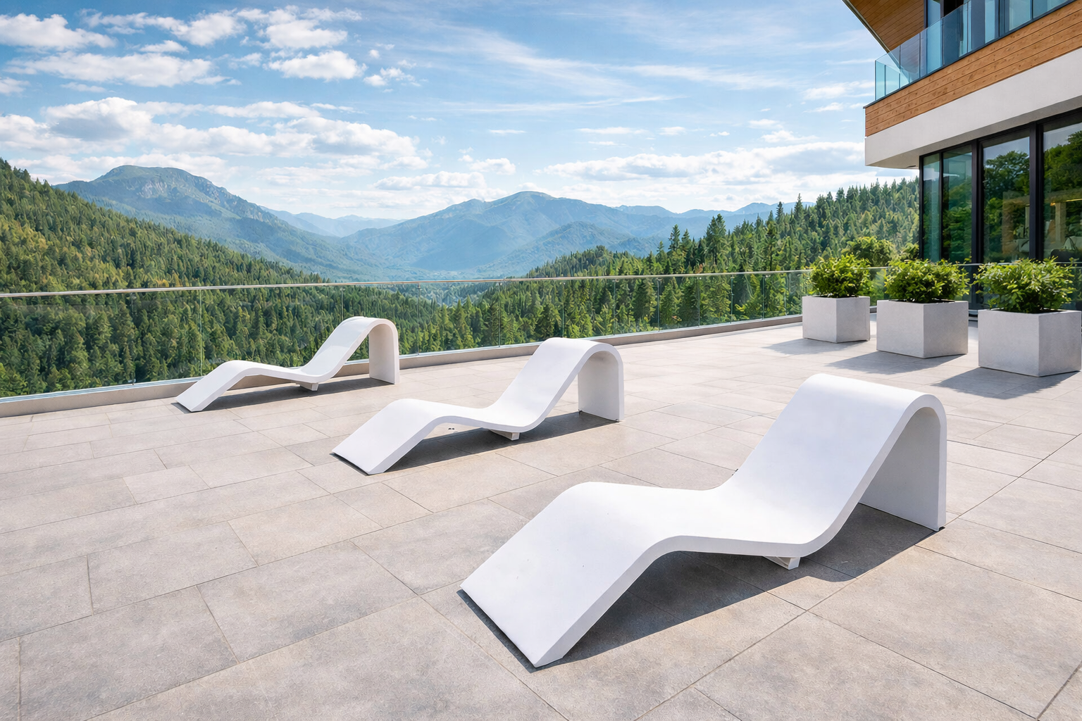 Eine moderne Betonbank/-liege, die perfekt in moderne, modernistische Räume passt!
