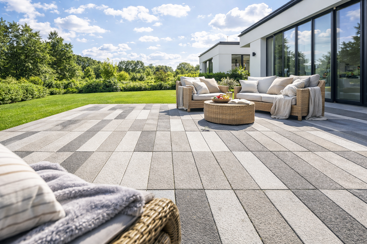 Płyta wykonana została z najlepszych materiałów, aby była zapewnić odporność na ścieranie, nacisk i wpływ warunków atmosferycznych. Bogata kolorystyka nie traci na intensywności i nie blaknie pod wpływem promieni słonecznych.